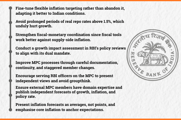 But there were periods when inflation targeting imposed a too high growth sacrifice. Since the seventies, during relatively lower growth, real interest rates derived from CPI headline (CPI-IW prior to 2013-14) have exceeded 1.5. Examples in the inflation targeting period are 2017-18 to 2019-20 and 2024-25. Fine-tuning inflation targeting may prevent this in future.