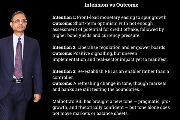 But Malhotra must now temper idealism with sequencing. Front-loading rate cuts before fiscal or structural levers were aligned have shown how good intentions can misfire.