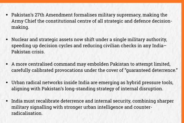 The future of deterrence and crisis escalation is shifting as Pakistan’s 27th Amendment cements the army’s dominance, tightening nuclear control and altering the risks India must navigate.