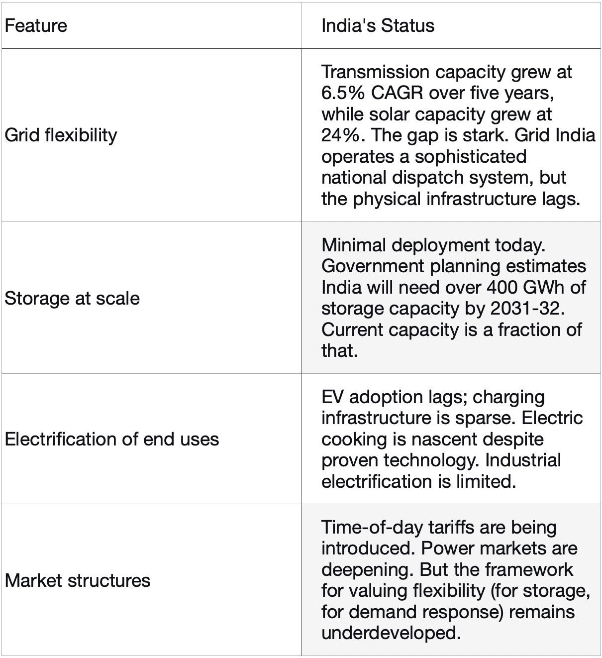 The contrast with India remains instructive, but not in the way often assumed. India’s solar capacity grew at 24% CAGR over five years; its transmission capacity grew at just 6.5%. China built the wires alongside generation at a scale India has not matched. But China is now wrestling with the same transmission crises - curtailment, cancellations, negative prices - at a far larger scale. The lesson for India is not that China solved the problem but that building generation without the flexible grid to support it leads to the same outcome everywhere.