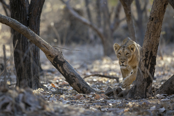 Amidst the stark beauty of the dry scrubland and deciduous forests of its habitat in a topography made up of successive rugged ridges, isolated hills, plateaus and valleys shared with over 606 varieties of plants, 38 species of mammals, 37 species of reptiles, over 2,000 genus of insects and approximately 300 sorts of birds in a delicate ecological balance, the lion is slowly re-taking its place as the pride of India.
