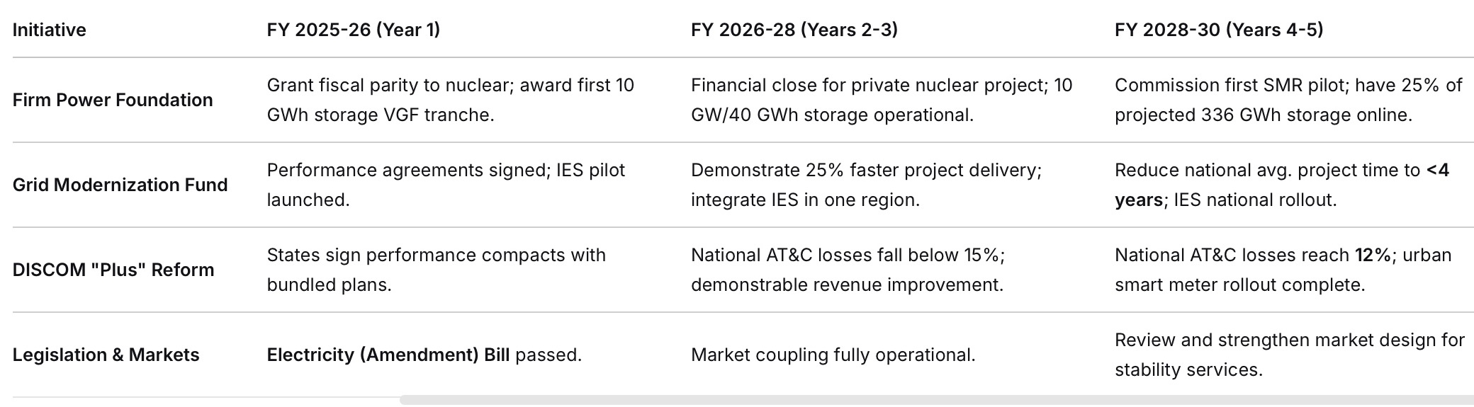 An unbalanced transition which fails to integrate firm, clean power could actually lock the country into coal-based generation as the default backup, compromising climate goals and would also perpetuate import dependence for fossil fuels. It is in this context that large-scale nuclear and Small Modular Reactors have returned to the agenda as a source of zero-carbon, firm baseload power, a strategic complement to renewable energy for long-term energy security. This strategy can be made effective through targeted, time-bound measures in the budget to catalyse a fundamental shift from funding isolated projects to financing an integrated, secure energy system. The measures, which are interdependent, necessarily have to be driven by clear, measurable outcomes and deadlines (the numbers are based on rough estimates of the requirements):